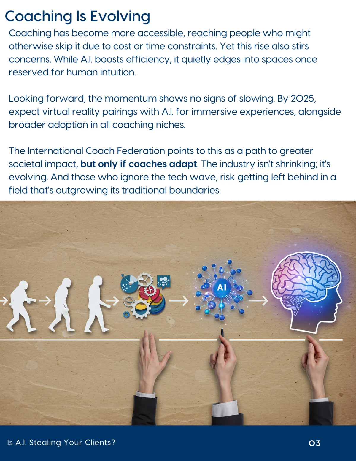 Our 10-page report will show you how to adapt to the fact that A.I. might seem like a solution for your clients, and what to do about it.